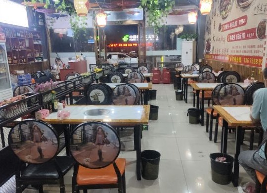 本店上下两层,厨房里有3项电,冰箱冰柜,楼上有3个包厢,楼上楼下空调齐全,做餐饮的老板接手后几乎不需要怎么装修